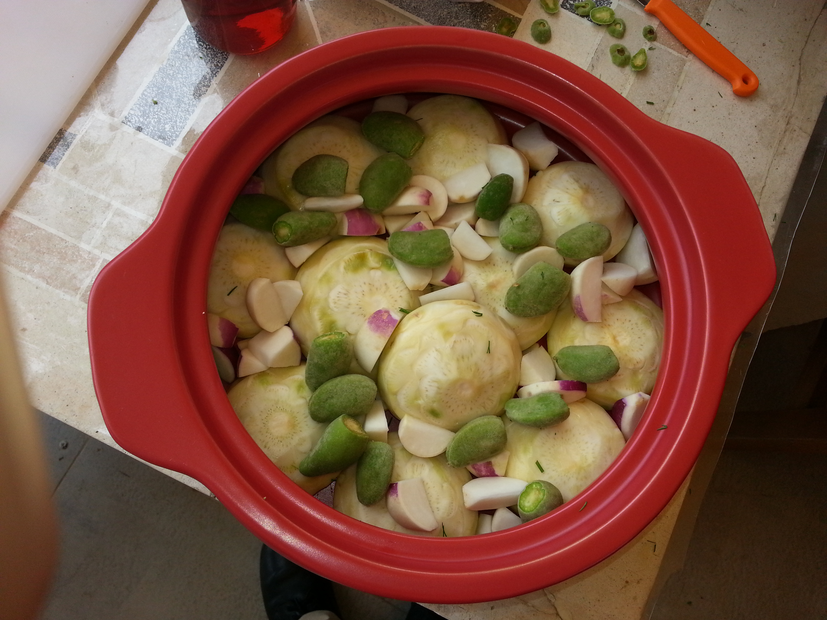 Bunlar mor ege enginarları başka türlü lezzetli hele şimdiki kadar taze olurlarsa tadına doyum olmuyor. Evvelden bu reçeteyi limon suyu ile yapardım, bir kaç senedir çağla zamanı çağla ile yapıyorum çok değişik hafif bir ekşiliği oluyor, bir çok kişi çağlaları piştiğinde baklaya benzetiyor.
