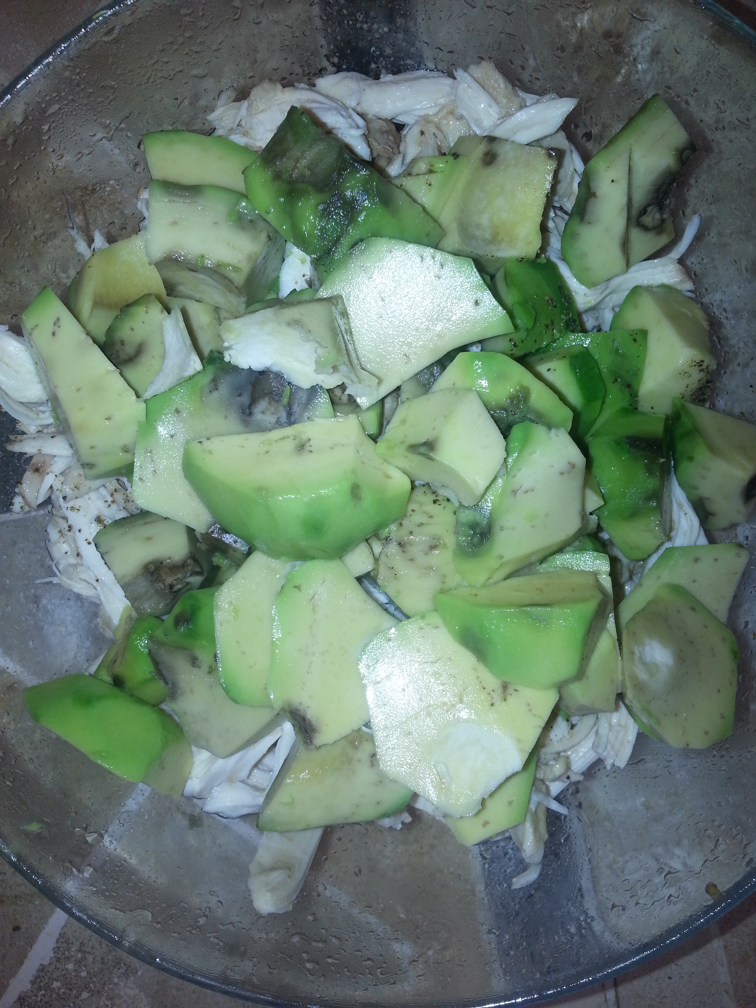 Sarımsakları bütün olarak 1 kaşık çiçek yağında kızartın, sarımsakları içinden alın cashew fıstıklarını aynı yağda pembeleştirip bir kenara koyun. Yoğurdu, tavuk suyu ile iyice karıştırın, kavurduğunuz sarımsakları bir sarımsak sıkacağından geçirerek veya havanda döğerek yoğurtlu karışıma katın, zeytinyağını ve salata baharatını ilave edin, tadına bakarak arzu ettiğiniz kadar tuz ve karabiber ilave edin. Tavuklara irice küpler halinde doğradığınız avokadoları ilave edin, ve hepsini güzelce karıştırın. Servis ederken üzerine maydonoz ve kavrulmuş cashew fıstıklarını serpin. Acı severseniz isot biberi de ekleyebilirsiniz. Afiyet olsun !
