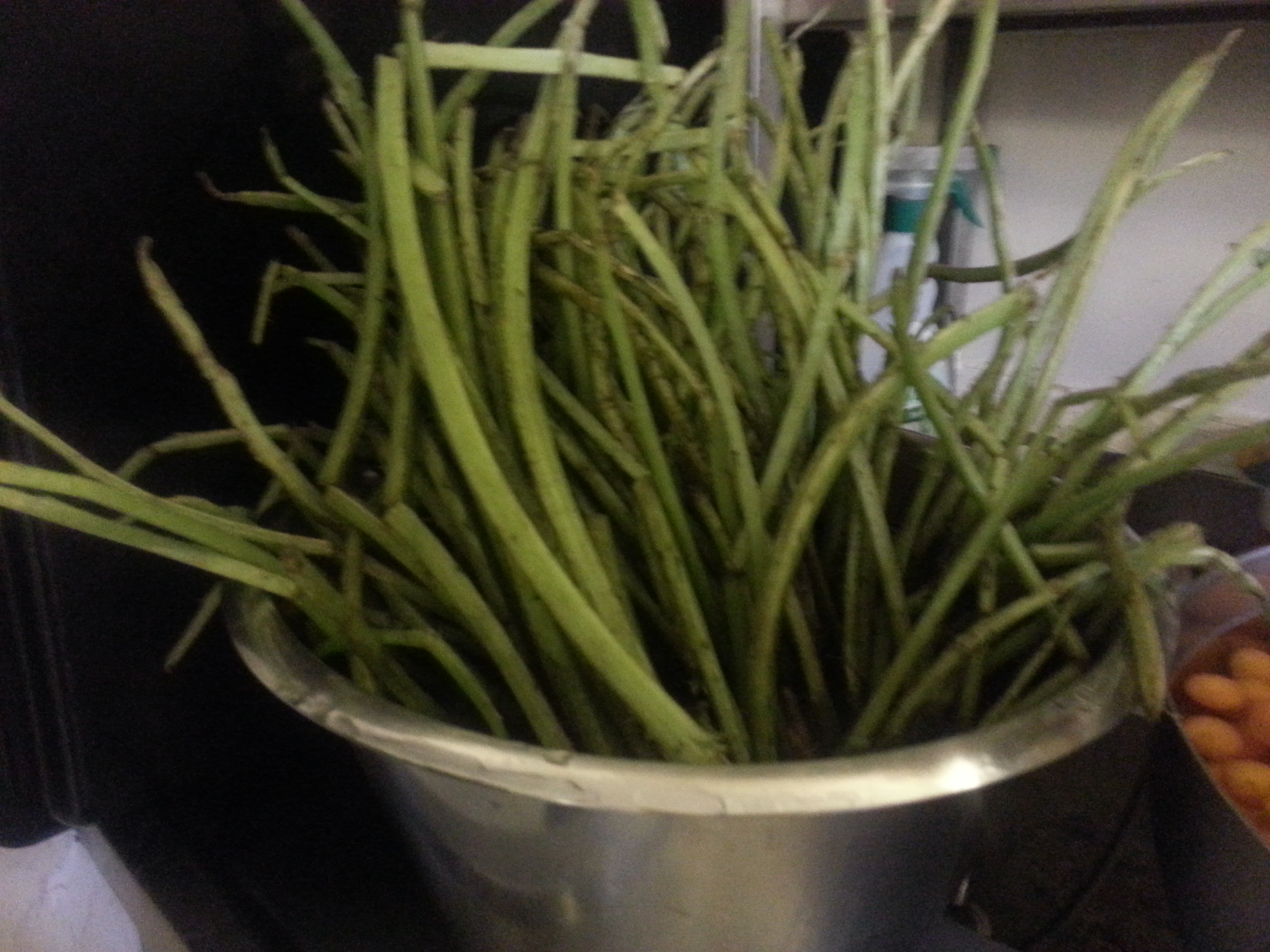 Bu kengerleri dolma yapmak için almıştım, burada bunların ortasına zeytinyağlı dolmaiçi doldurup ile bağlıyorlar ve sonra una bulayıp kızartıyorlar. Çok aklıma yatmadı, önce bir tatmam lazım güzel yapan birini bulursam ilk fırsatta deneyeceğim. Ben bunları böreğe katmaya karar verdim. Karnıbaharı, havuçları, ve kengeri roboto koyup çektim. Körmenleri ince ince doğradım ve tuz ile ovdum. Maydonozu doğradım, hepsini karıştırıp içine ekmek kırıntısı, üzümler, baharat ve hamur kabartma tozunu ekledim, lor peynirini içine ufaladım. Böylece böreğin içi hazır oldu. Diğer kapta yumurtaları çırptım, yağı ve sütü ilave ettim. Yufkaları dörde böldüm, çok büyük sigara böreği sarar gibi sardım ama sarmadan önce hazırladığım sütlü karışım ile yufkalar ıslattım harcı koydum ve sardım. Bu sene Bodrum’a bahar erken geldi bahçede her taraf yabani ot, ısırganlar heba olmasın diye bahçeyi düzene koyamadım daha bahçeden de biraz ısırgan yaprağı topladım.