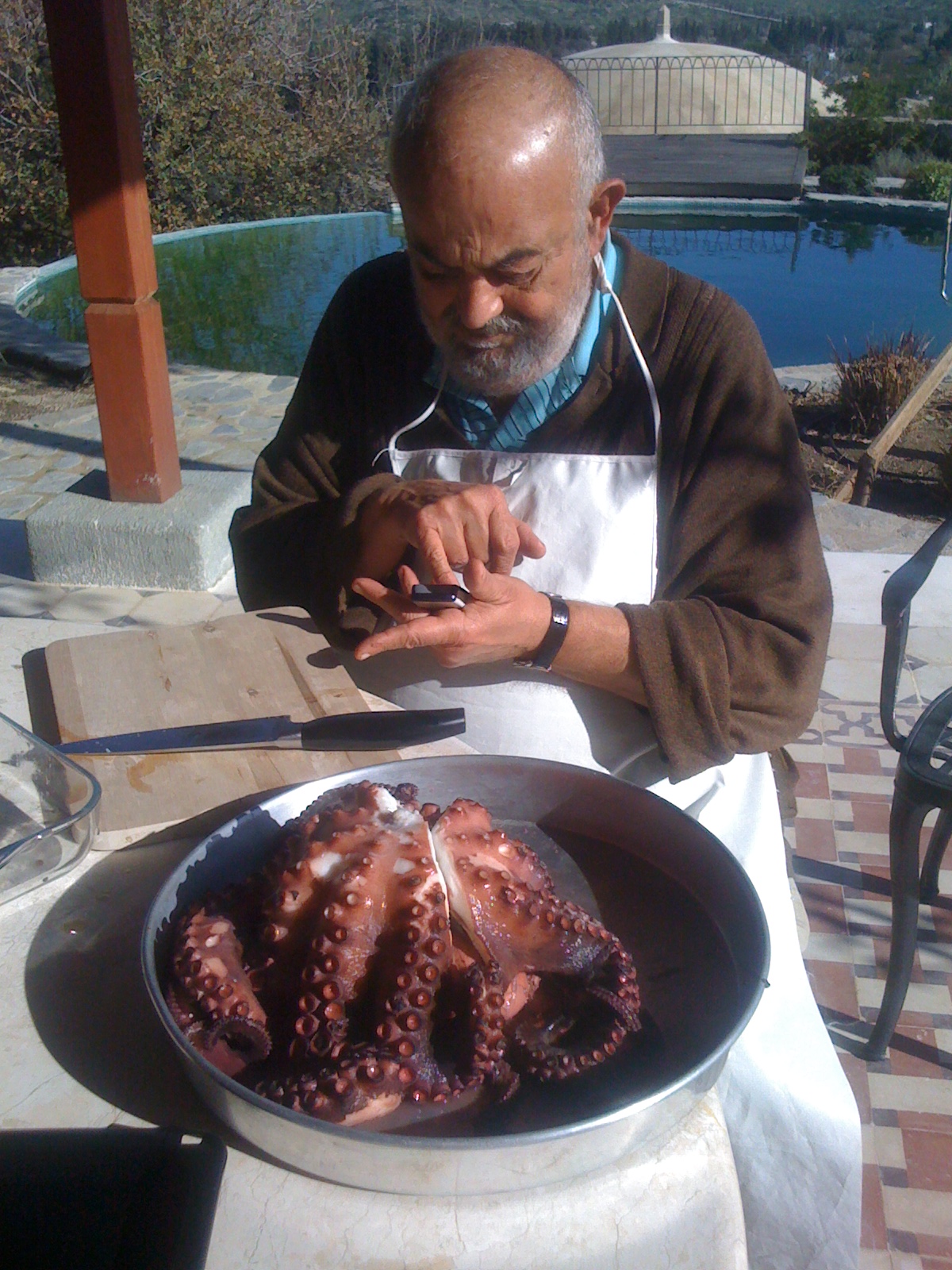 Ahtapot pişirmek uzmanlık istediğinden uzun zaman uzak durmuşumdur, ama Byron Ayanoğlu gibi tüm Yunan Mutfağı konusunda uzman bir şef ile defalarca yemek dersleri organize edip dost olunca bu işin püf noktasını öğrendim. “Dondurmak” bu da nereden çıktı demeyin, ahtapotu canlı canlı taşlara vurmaktan daha doğru geldi bana doğrusu. Ahtapotu alınca hemen derin dondurucuya atın bir gece kalsın ertesi günü çıkarıp kendi halinde çözülmeye bırakın oda sıcaklığında. Bir tencerede bir kaç sap taze soğan, bir kaç sap maydonoz, bir havuç ve 4 adet küçük pancarı kabuğu ile kaynatın içine 6 -8 tane tane karabiber atın ve 1/4 bardak sirke ilave edin. Kaynama suyunu fazla koymamanız lazım ahtapotun büyüklüğüne göre tencerenin dibine Ahtapotun 1/3 ünü kaplayacak kadar su koyun. Kaynadıktan sonra ahtapotu kaynayan sebzelerin üzerine koyup kapağını kapatın. Pişme süresi ahtapotun büyüklüğü ile doğru orantılı, genelde 2 – 2.5 kgluk bir ahtapot 45 dakikada pişiyor. Pişip pişmediğini anlamak için bir bıçak saplayın eğer bıçak direnç görmeden geri çıkıyorsa pişmiş demektir. Pişmiş ahtapotu parcalara ayırın bir tabağa alın, pişmiş pancarları doğrayın ve üzerine taze doğranmış maydanoz ve fesleğen serpiştirin. Sosu için 1 limonun suyunu, 1 kaşık hardal, yarım çay bardağı zeytinyağını ve 1 çay bardağı ahtapotun suyundan ilave ederek birlikte çırpın ve ahtapotların üzerine dökün. Afiyet olsun